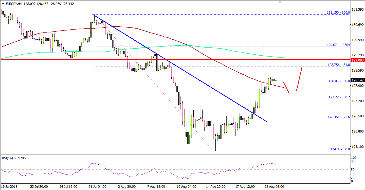 After a major decline, the Euro found support near the 124.85-125.00 zone against the Japanese Yen. The EUR/JPY pair started a solid upward move and climbed above the 126.00 and 127.00 resistances.