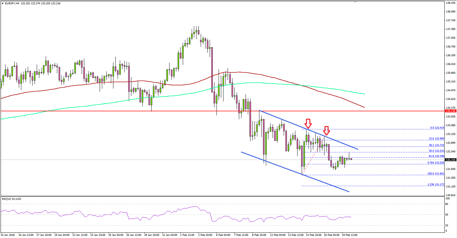 The Euro remained in a bearish bias during the past few days against the Japanese Yen. The EUR/JPY pair declined and it remains at a risk or more losses, with resistances on the upside at 132.60 and 133.00.