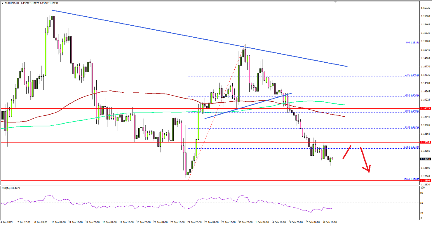 • EUR/USD broke a few important supports such as 1.1440 and 1.1400.