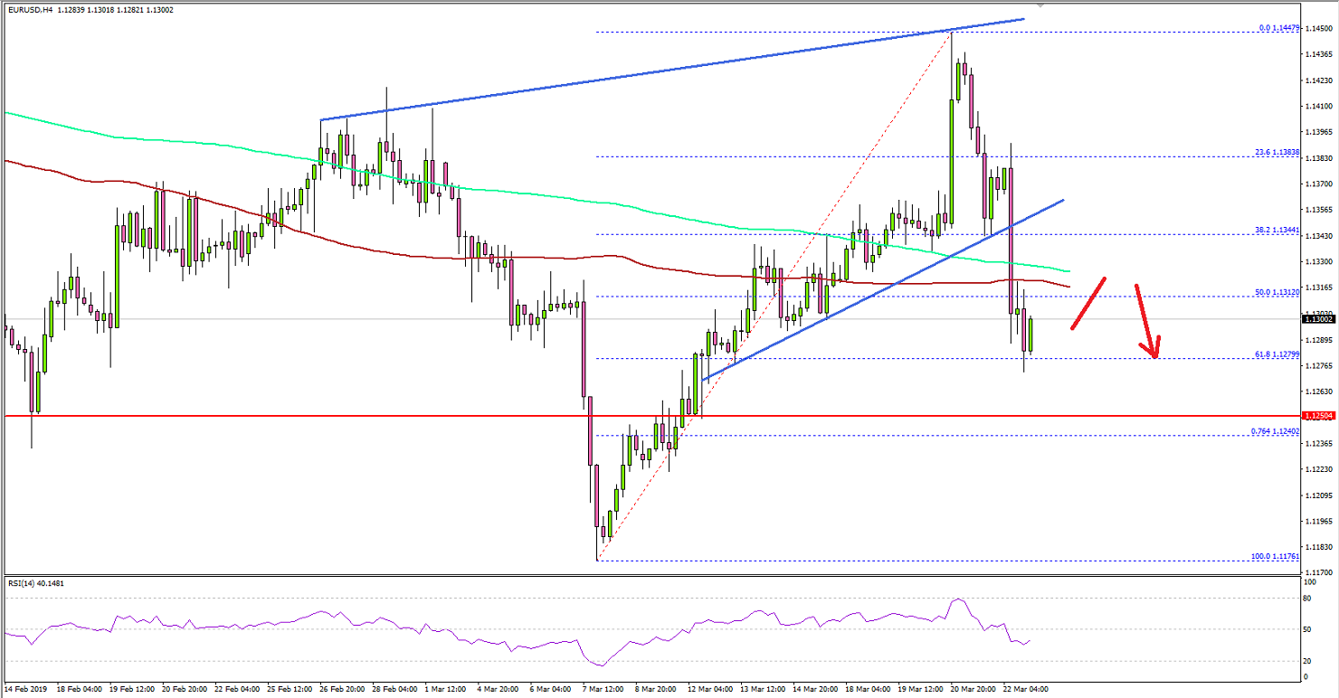 Overall, the EUR/USD pair moved into a short term bearish and it could retest the 1.1250 support, where buyers are likely to emerge.