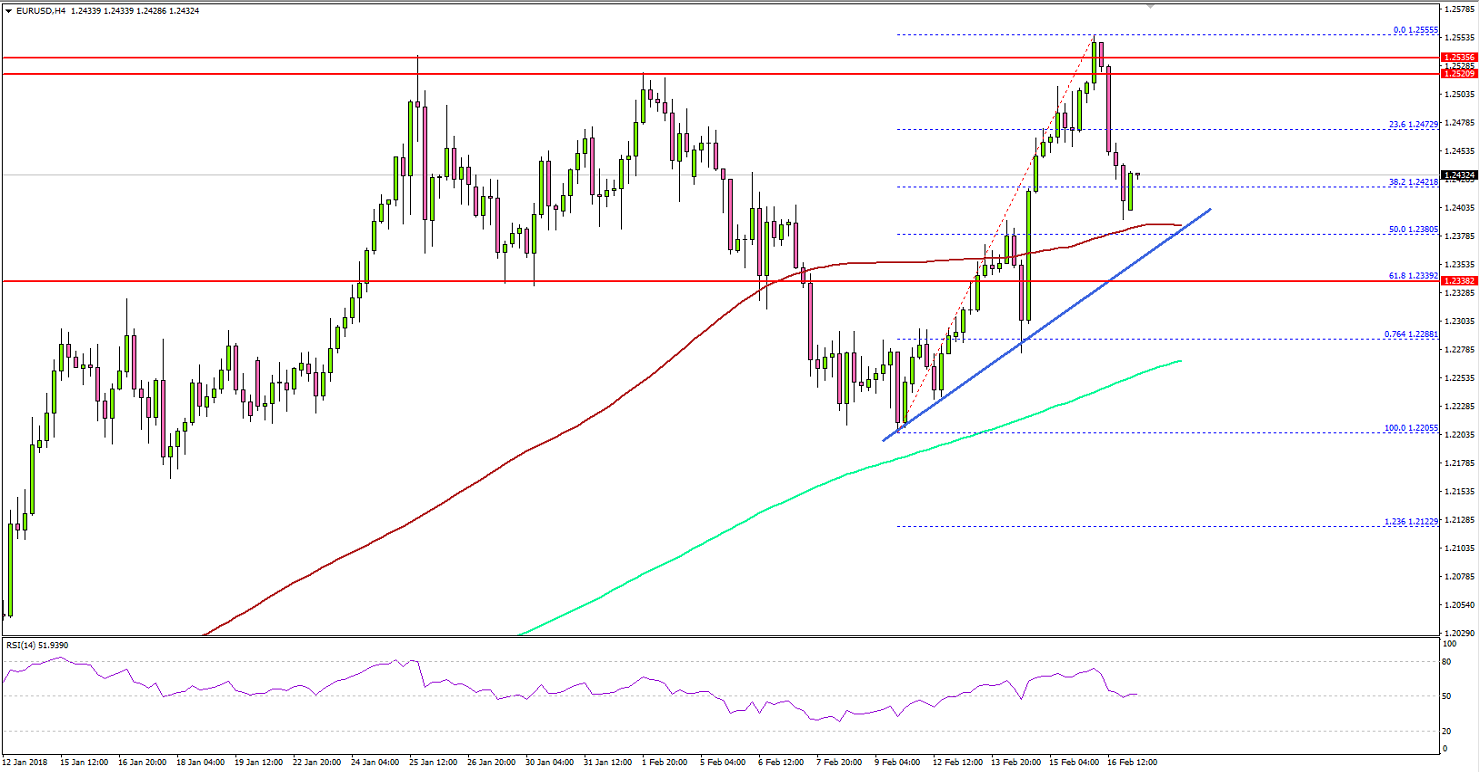 The Euro made good ground this past week and traded above 1.2500 against the US Dollar. The EUR/USD pair faced sellers near 1.2550 and later it started a downside correction.