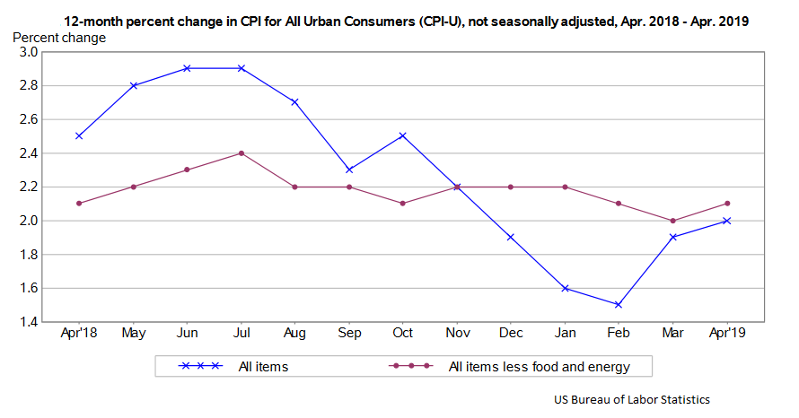 • The US CPI in April 2019 increased 2.0% (YoY),less than the +2.1% forecast.