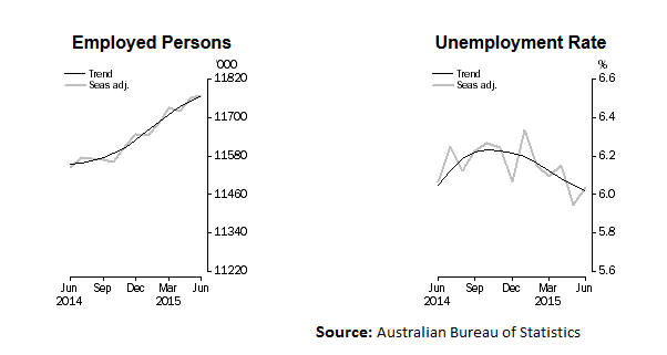 - Australian Employment Change released by the Australian Bureau of Statistics registered an increase of +7.3K in June 2015, whereas the market was expecting a decline of -5.0K.