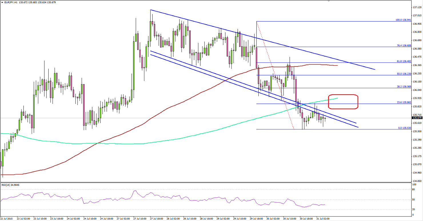 The pair already made an attempt to correct higher, but failed around the broken trend line and the 23.6% Fib retracement level of the last drop from the 136.94 high to 135.53 low. In short, we might assume that the pair completed a correction and could be heading lower in the near term.On the downside, the next support area may be around 135.00-10, followed by the all-important 134.80.