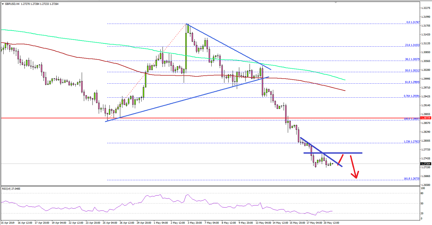 Overall, GBP/USD is clearly in a strong downtrend and the current technical indicators suggest more downside towards 1.2650 in the coming sessions. Similarly, there could be more downsides in EUR/USD towards 1.1100.
