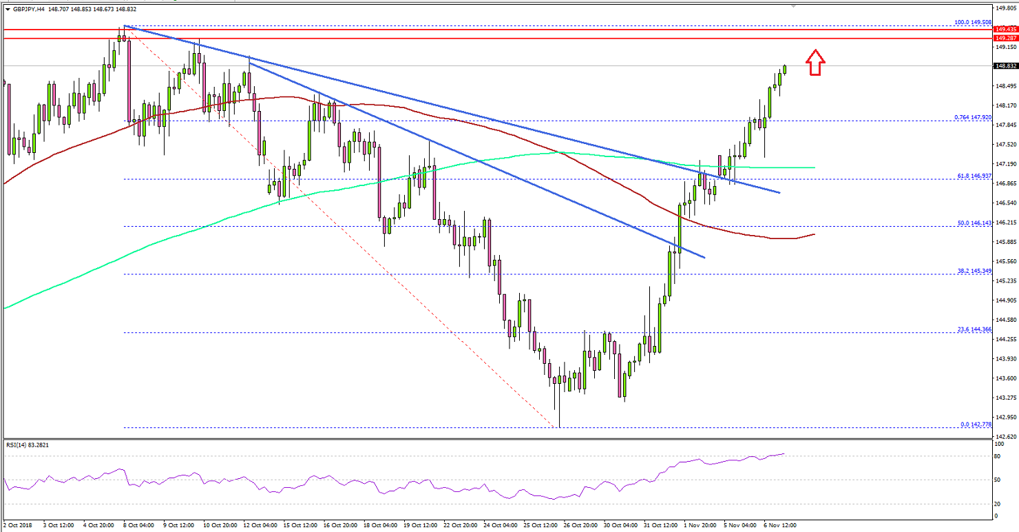Looking at the 4-hours chart, the pair moved higher after trading as low as 142.77. It broke many resistances near 145.00 and settled above the 200 simple moving average (4-hours, green).During the rise, there was a break above two bearish trend lines with resistance at 145.60 and 146.90 on the same chart. Besides, the pair broke the 76.4% Fib retracement level of the last major drop from the 149.50 high to 142.77 low.It means there are high chances that the pair could continue to move higher towards the last swing high at 149.50, which is a significant hurdle for buyers. Above 149.50, the pair will most likely rally above the 150.00 handle.If there is a downside correction, an initial support is near the 147.20 level and the 200 simple moving average (4-hours, green). Below the 200 SMA, the pair may well correct towards the 146.00 support and the 100 simple moving average (4-hours, red).The overall price action is positive and it seems like both GBP/USD and GBP/JPY may perhaps continue to recover in the near term.Economic Releases to Watch Today