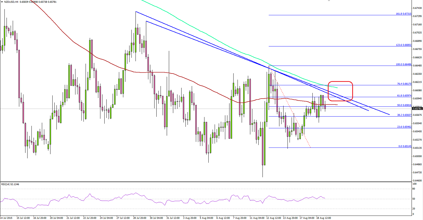 New Zealand PPIEarlier during the Asian session, the Producer Price Index, which is a measurement of the rate of inflation experienced by producers was released by the Statistics New Zealand. The market was expecting the PPI Input to register a decline of 0.5% in the second quarter of 2015, compared with the preceding quarter. However, the outcome was a bit on the higher side, as the New Zealand Producer Price Index Input came in at -0.3%.Furthermore, the New Zealand Producer Price Index Output came in line with the market expectation, as there was a decline of 0.2% in the second quarter of 2015, compared with the preceding quarter.Commenting on the report, the prices manager, Chris Pike, stated "Prices were down 5.5 percent for dairy cattle farming outputs, and down 4.2 percent for dairy product manufacturing inputs. Both falls were due to lower farm-gate milk prices".There was a major impact noted on the NZDUSD pair after the release, and it continued to trade in a range during the Asian session.NZDUSD Technical AnalysisThe New Zealand Dollar recently managed to gain bids and traded higher against the US dollar, but the upside was not much as there are many hurdles aligned on the way up for the pair. There are a couple of bearish trend lines formed on the 4-hours chart, which also sitting along with the 200 simple moving average.NZDUSDSo, there is a high probability that the NZDUSD pair might struggle to clear the highlighted resistance area moving ahead. A break above 0.6600 might signal more gains in the near term.On the downside, an initial support can be seen around 0.6550, followed by the last swing low of 0.6515. The H4 RSI is above the 50 level, which is a positive sign for buyers.