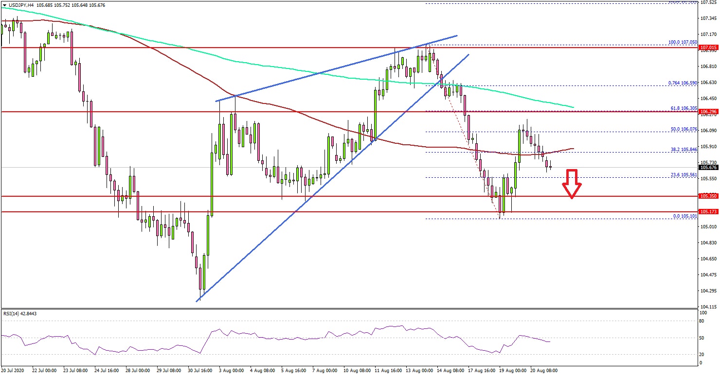 Earlier this week, the US Dollar failed to recover above 106.50 against the Japanese Yen. As a result, USD/JPY started a sharp decline towards the 105.00 support zone.